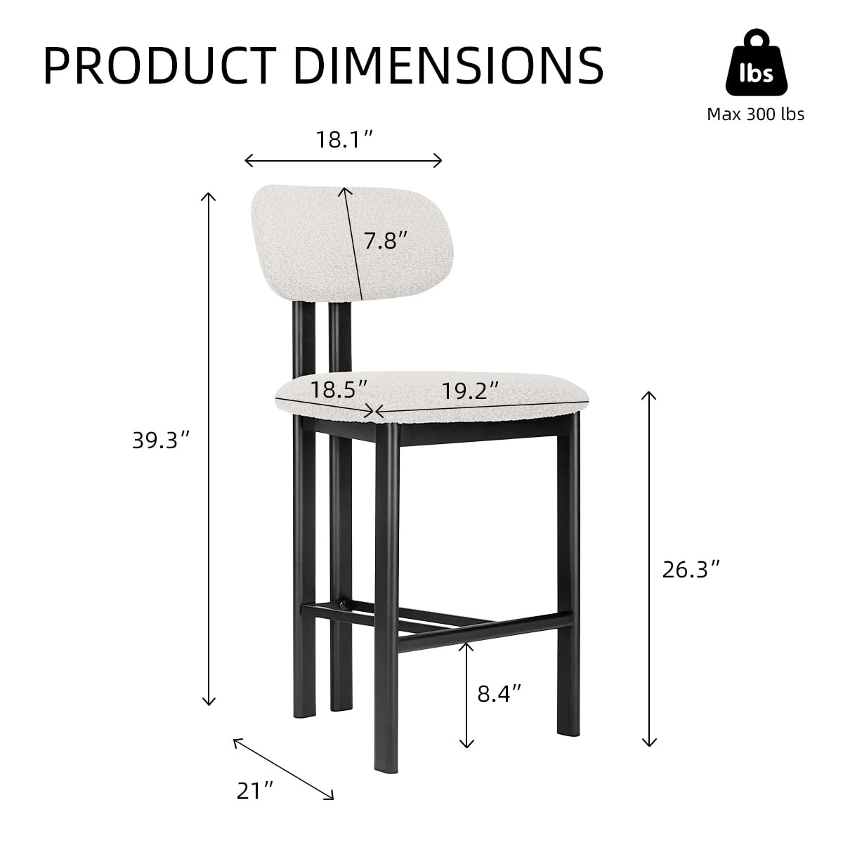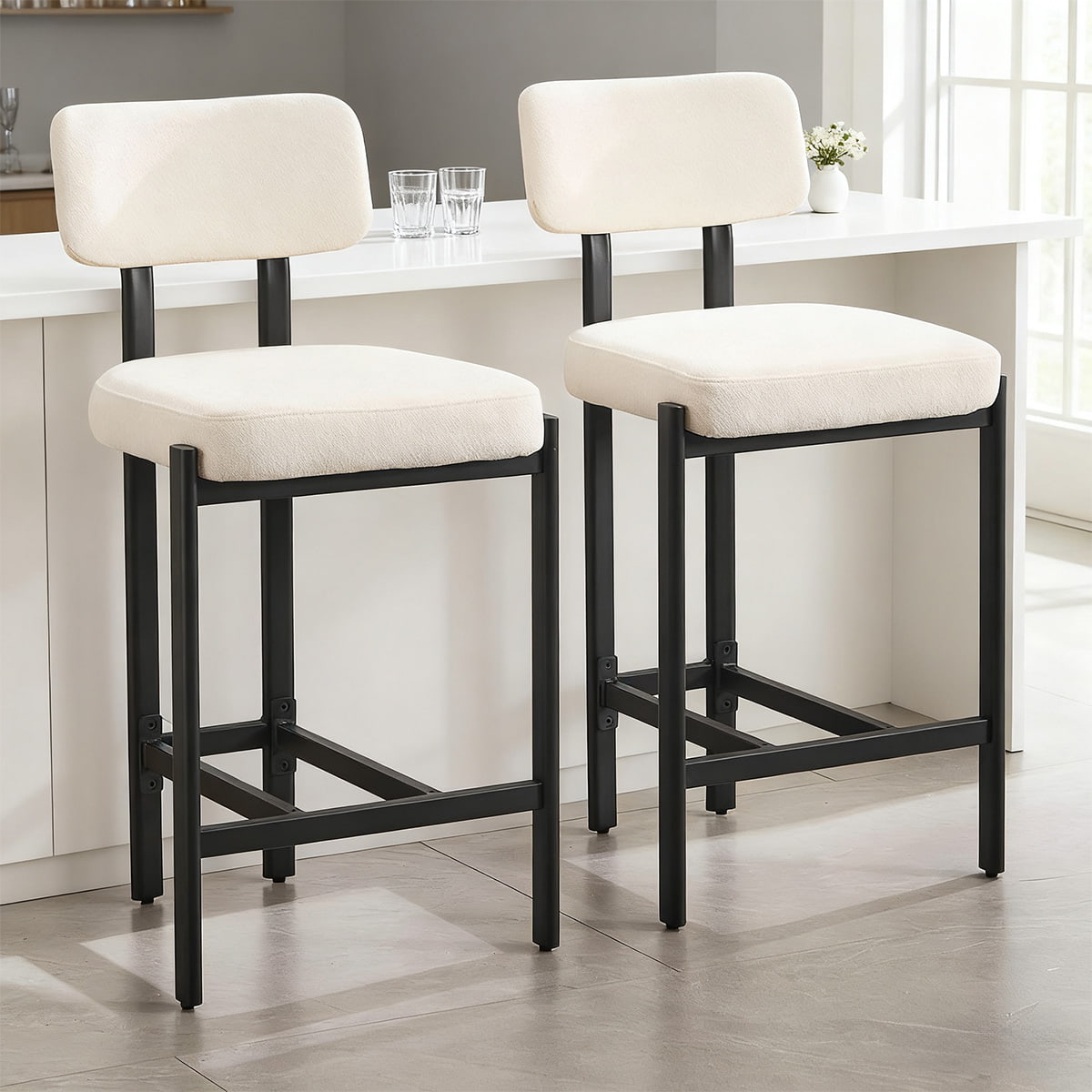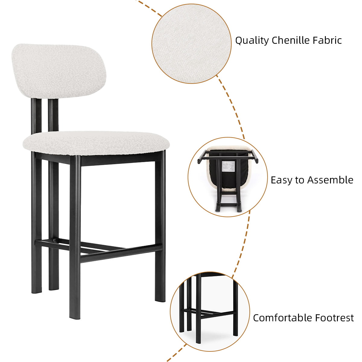 Moderne BeigeChenille barstole i Counterhøjde — polstrede buede barstole med metalben og fodstøtte til køkkenøen, hjemmebaren eller spisestuen