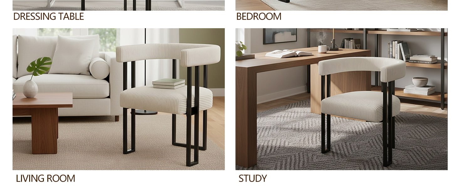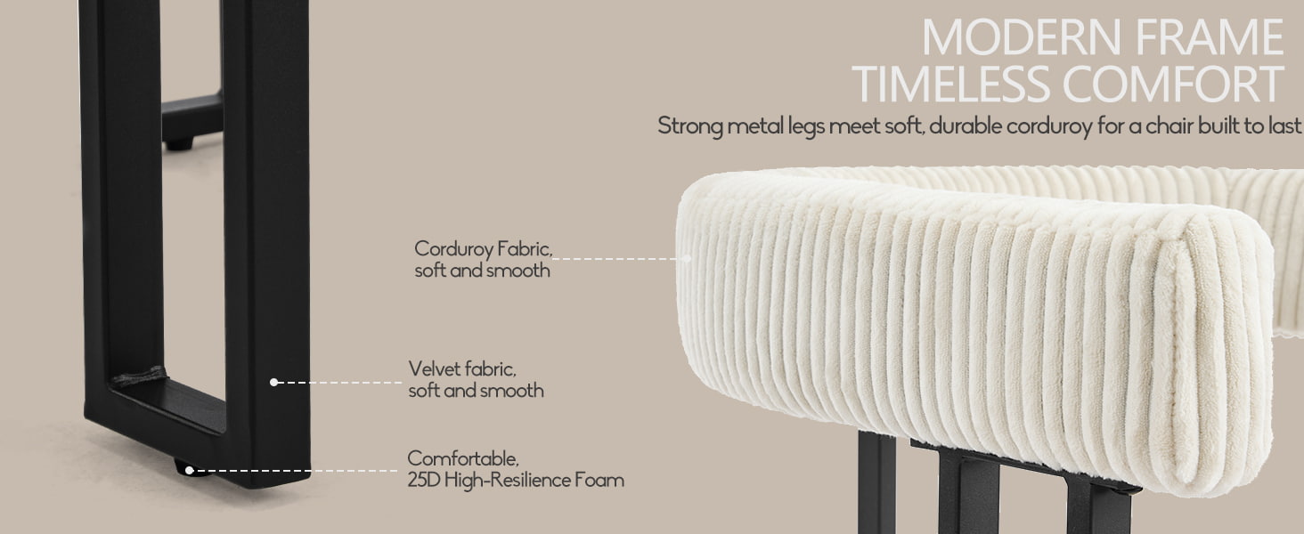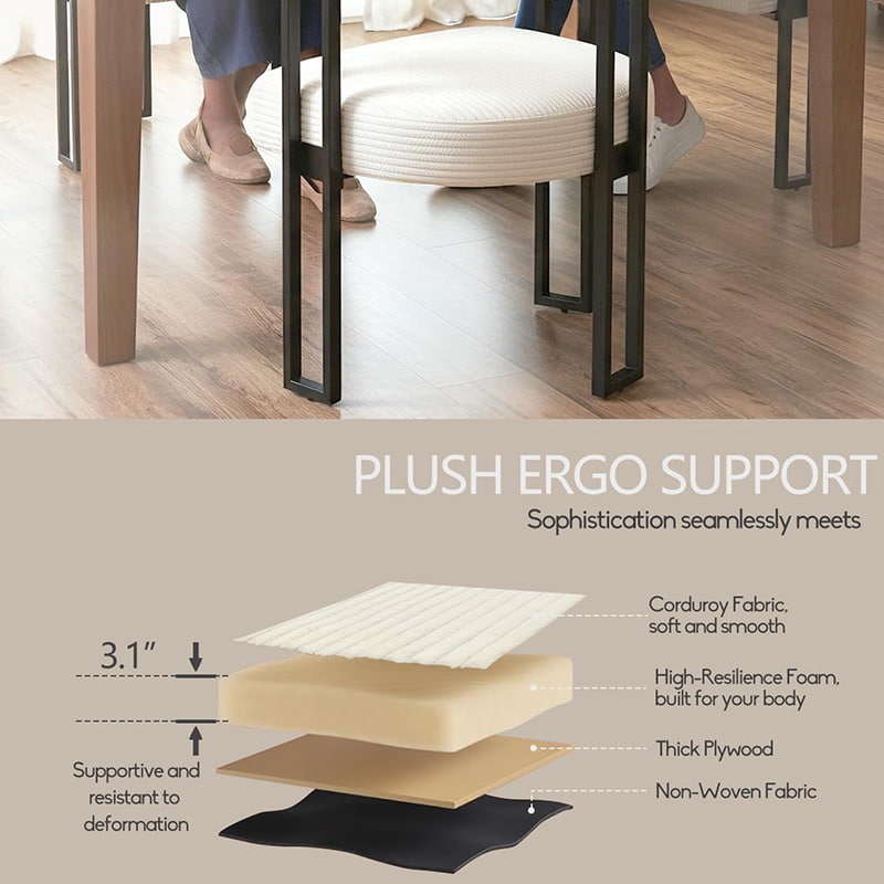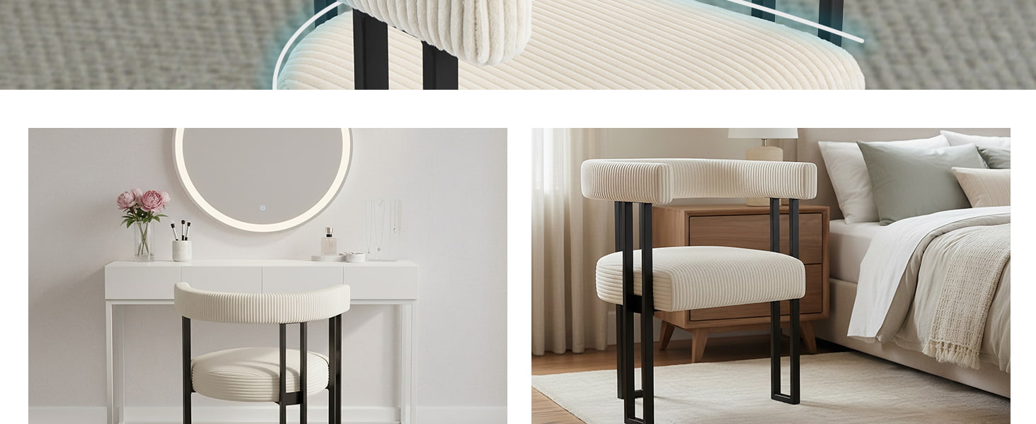 Sædet er fyldt med højelastisk skum, der bevarer sin form over tid og giver pålidelig støtte, uanset om det bruges ved spisebordet, toiletbordet eller hjemmekontoret. Et gennemtænkt designet U-formet ryglæn giver ergonomisk støtte til taljen og ryggen, og hjælper med at reducere træthed under længere siddende.