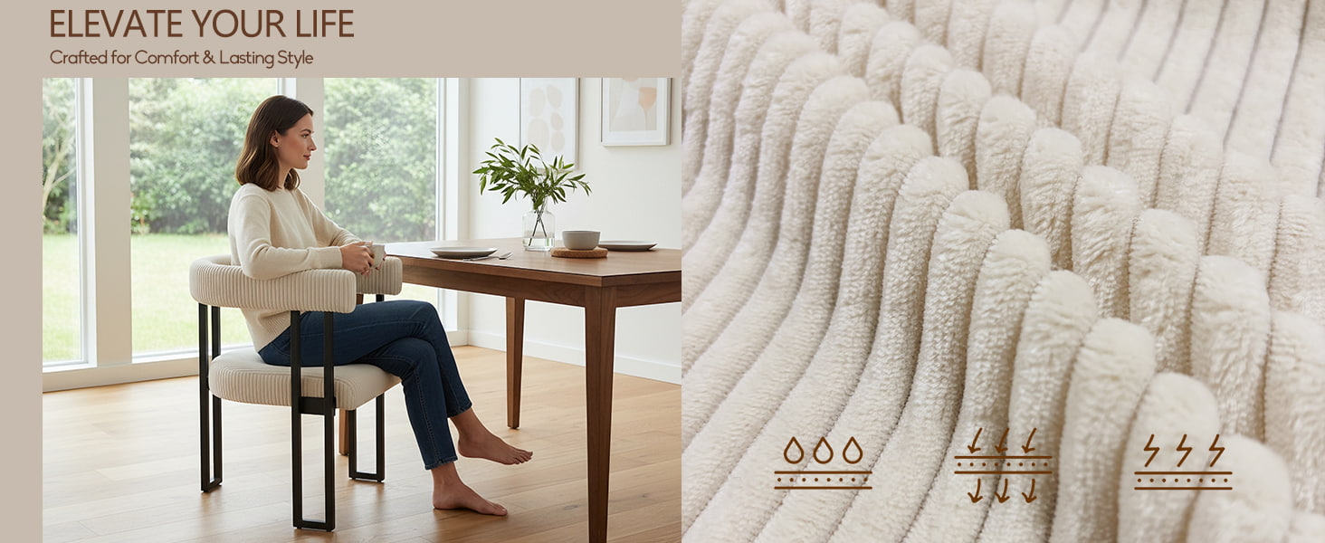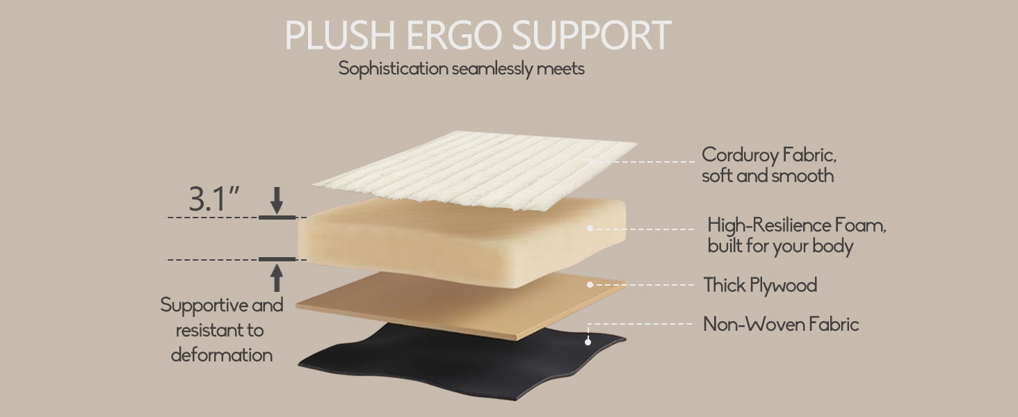 ● Plys fløjlspolstring: Soft-touch boucle fløjlsstof giver en varm, tekstureret følelse, samtidig med at det forbliver holdbart og nemt at vedligeholde.