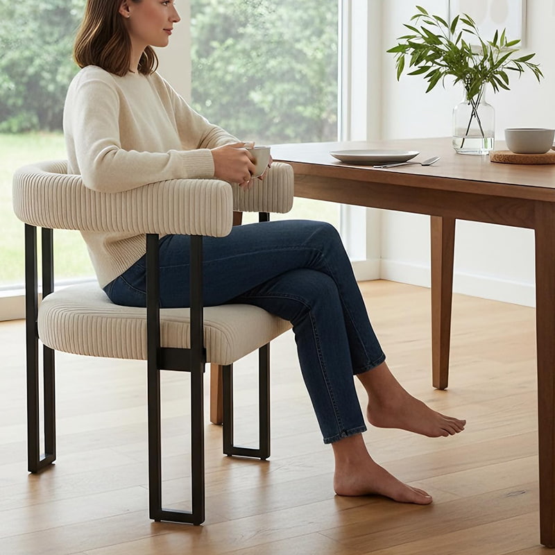 Denne boucle spisestuestol er designet til B2B-købere, der søger pålidelige, eksportklare spisestuestole med stabil kvalitet og fleksibel forsyning. Denne polstrede spisestuestol er betrukket med slidstærkt fløjlsstof med højelastisk skumpolstring og tilbyder ensartet komfort, strukturel stabilitet og langsigtet ydeevne til kommerciel og privat brug. Den er velegnet som spisestuestole til restauranter, køkkenstole til detaildistribution eller accentstole til boligindretningsmærker.