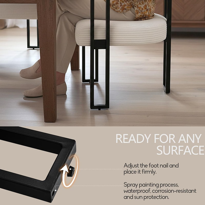 ● Gulvvenligt design: Justerbare fodsøm med gummihætter beskytter gulve og holder stolen stabil på ujævne overflader.