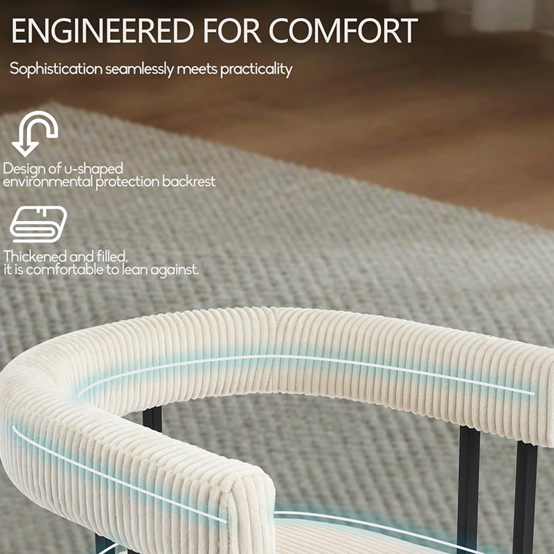 ● U-formet ergonomisk ryglæn: Designet til at støtte taljen og ryggen komfortabelt, ideel til spisning, arbejde eller afslapning.