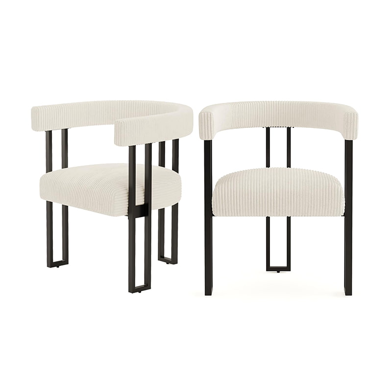Understøttet af robuste belagte metalben med justerbare anti-slip fodpuder, forbliver denne spisebordsstol stabil, mens den beskytter dine gulve. Med sin rene silhuet fra midten af århundredet og neutrale hvide tone passer den ubesværet ind i spisestuer, køkkener, stuer, soveværelser eller studierum.