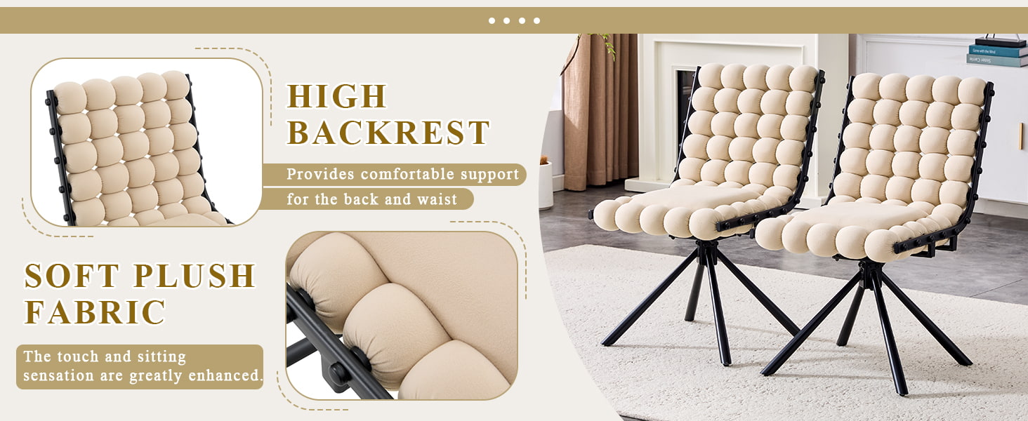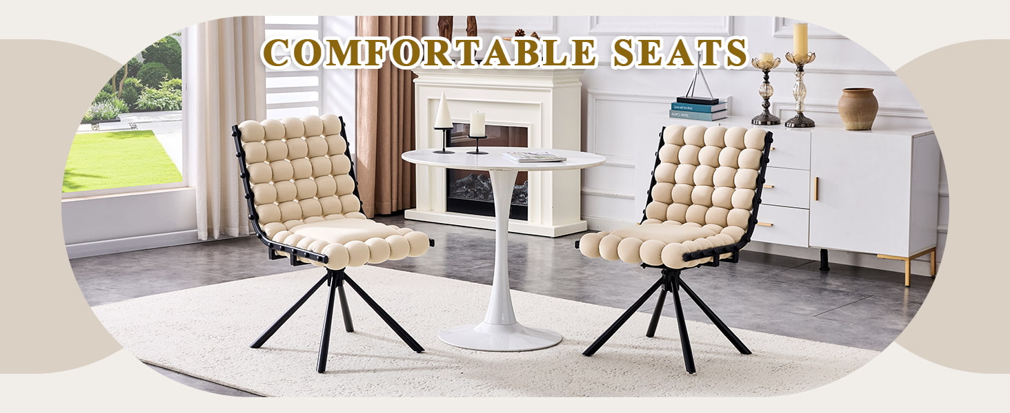 Denne drejelige spisestuestol i fløjl er designet til moderne spisestue, livsstilsinteriør og kommercielle boutique-miljøer. Med et skulpturelt ryglæn med boblepude og glat hollandsk fløjlspolstring kombinerer stolen iøjnefaldende design med hverdagskomfort. Den 360-graders drejefunktion tillader fleksibel bevægelse, mens de robuste metalben og ingen hjulbase giver pålidelig stabilitet til spisestuer, stuer, makeup-områder og cafésæder. Dens ergonomisk buede ryg og højelastiske svampedæmpning hjælper med at fordele kropstrykket jævnt og giver behagelig støtte under længere siddende.