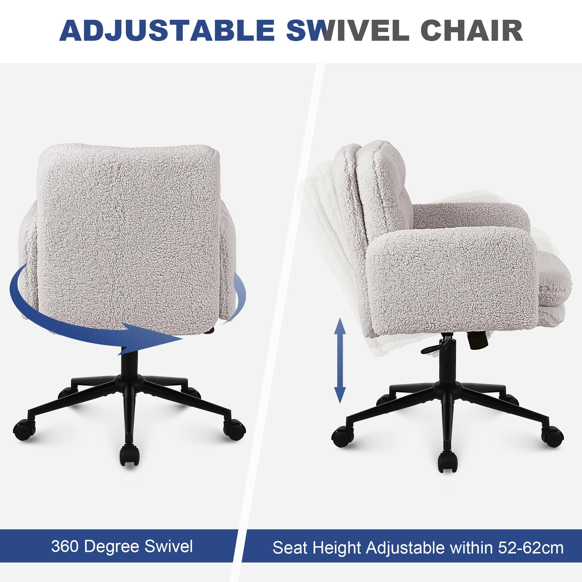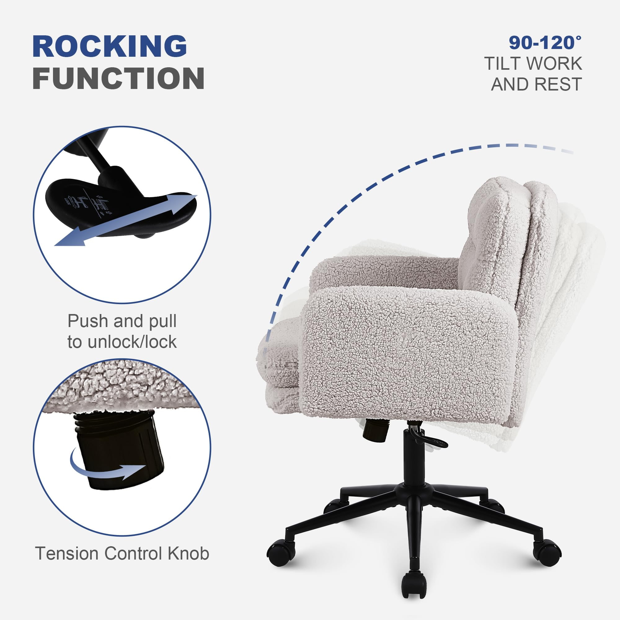 Justerbar kontorstol i imiteret kashmir med dreje- og gyngefunktion – Blødt polstret skrivebordsstol til hjemme- og forfængelighedsbrug