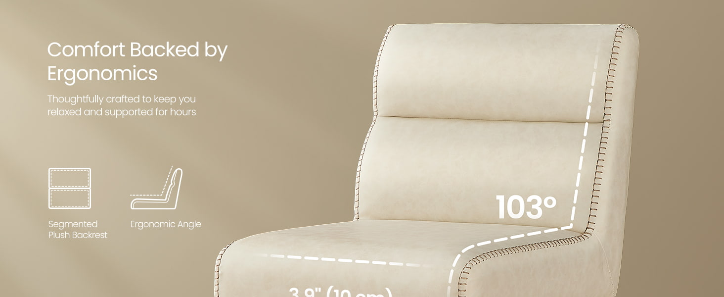 ● Ergonomisk 103° segmenteret ryglæn for afbalanceret lændestøtte
