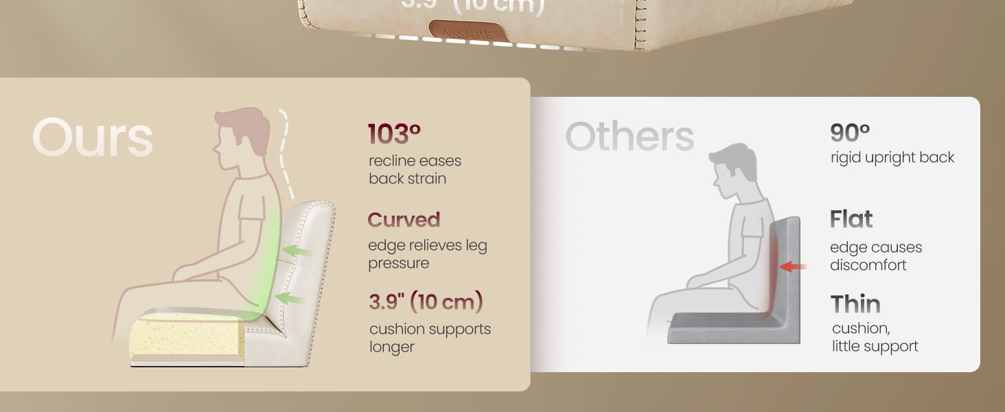 ● Buet sædekant for at reducere bentrykket under længere siddende