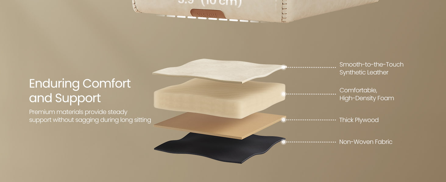 | Polstring | Premium syntetisk læder med dekorative syninger |