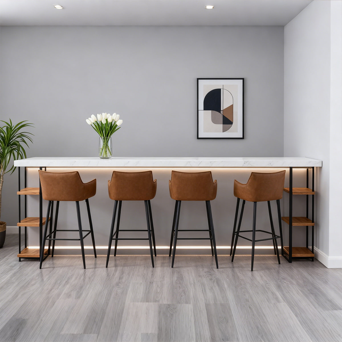 ● Moderne æstetik — Slank silhuet med varmt brunt imiteret læder og matsorte ben tilføjer raffineret industriel charme.